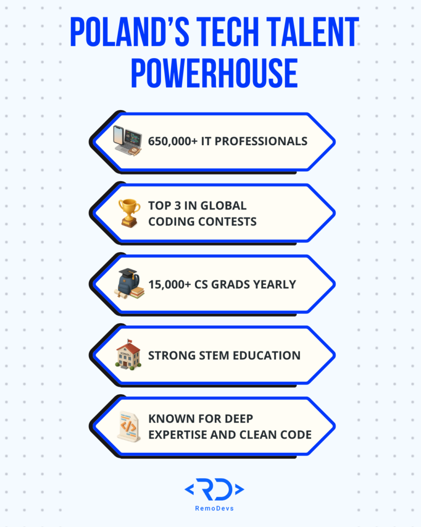 Poland’s IT talent stands out for more than just numbers, see the core reasons in this quick infographic: